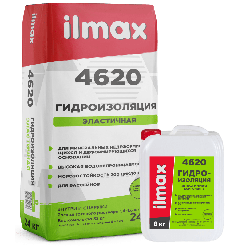 ilmax 4620 Гидроизоляция эластичная двухкомпонентная 24 кг + 8 кг